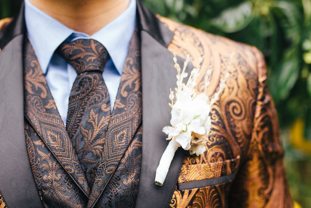 Step into forever with a Freeborn Wedding suit, a true masterpiece of expert craftsmanship. We skip the status quo, using unique brocade fabric woven on our state-of-the-art 60” CAD power loom in India by our master craftspeople. Then, our 5th-generation tailors hand-stitch that incredible fabric into a suit that’s as unique as your love story.